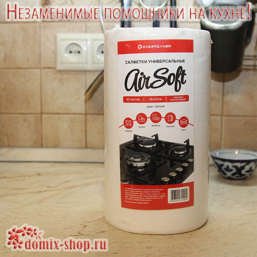 Салфетки универсальные из нетканого материала, 26х25см, с перфорацией, текстура - "легкий скраб". Рулон - 80 листов.